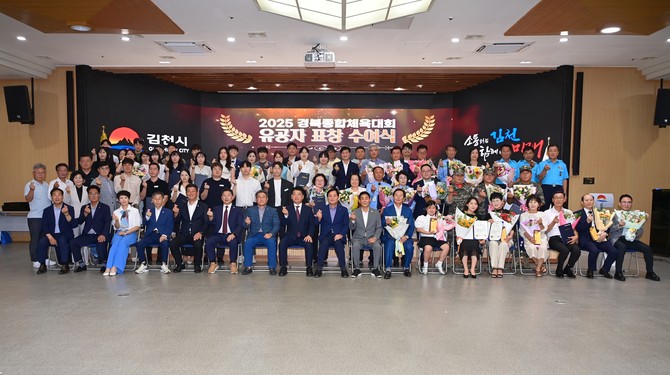 [프라임경제] 김천시(시장 배낙호)는 지난 8월7일 시청 3층 강당에서 '2025 경북종합체육대회 유공자 표창 수여식'을 개최했다. 이번 행사는 '제63회 경북도민체육대회'와 '제27회 경상북도장애인체육대회'의 성공적인 개최를 위해 헌신한 유공자들의 노고를 격려하고 감사의 마음을 전하기 위해 마련됐다.