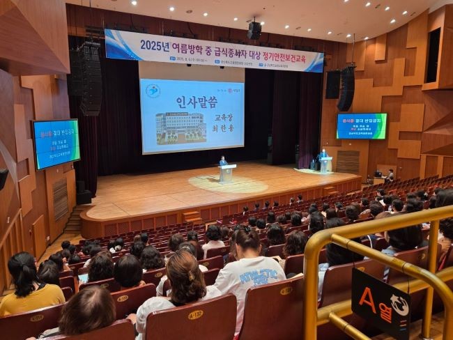 [프라임경제] 포항교육지원청(교육장 최한용)은 지난 6일 경북교육청문화원에서 급식종사자 총 550명을 대상으로 여름방학 중 정기안전보건교육을 실시했다.