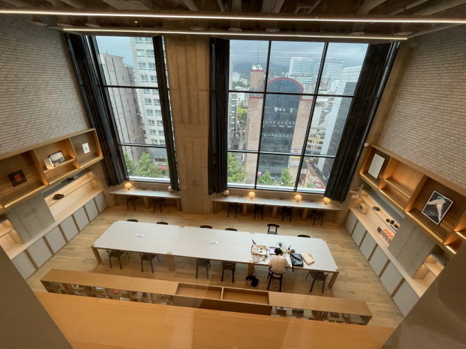 반면 7층의 '포커싱 존'은 분위기가 사뭇 다르다. 1인 좌석과 칸막이로 구성된 이곳은 공부하거나 재택근무를 하는 입주민들로 조용한 긴장감이 감돈다.