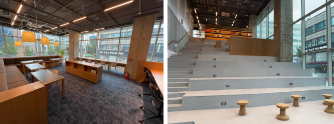 건물 곳곳에 테마별로 마련된 커뮤니티 존은 이 말에 힘을 실어준다. 3층에는 '릴랙싱 존'에서 은은한 조명 아래 푹신한 소파에 기대앉아 조용히 음악을 듣는 사람들이 있다.