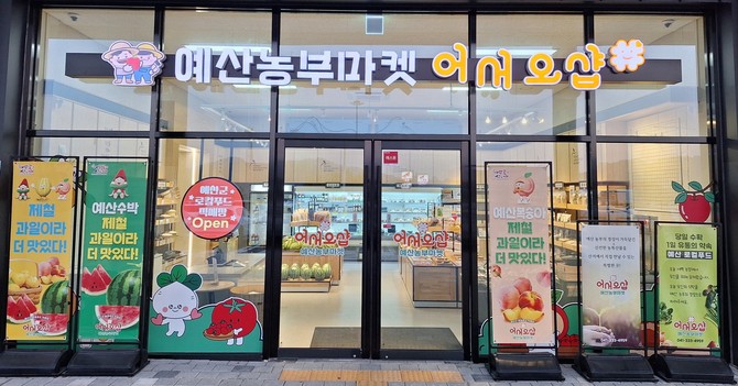 군이 직접 운영하는 첫 로컬푸드 직매장인 "예산농부마켓 어서오샵"은 지난 4월11일 정식 개장한 이후 누적 매출액 4억원을 달성한 데 이어 누적 방문객 2만명을 기록하는 등 개장 8개월만에 생산자와 소비자 모두를 만족시키며 지속적인 성장가도를 달리고 있다.