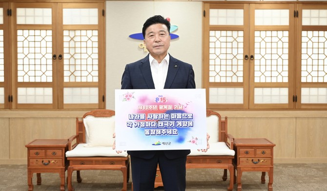 최재구 예산군수는 "광복 80주년을 맞아 태극기 달기 운동이 나라사랑의 마음을 되새기는 계기가 되길 바라며, 군민 여러분의 적극적인 동참을 부탁드린다"고 말했다.