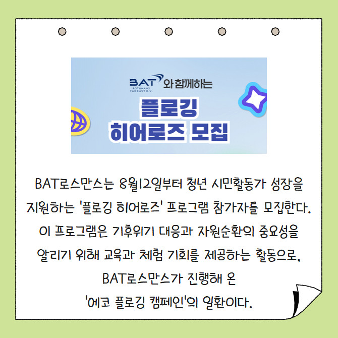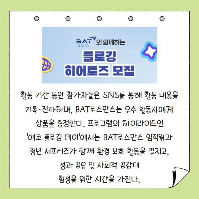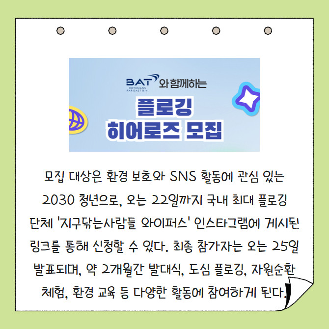 [카드] BAT로스만스, 청년 서포터즈 '플로깅 히어로즈' 모집