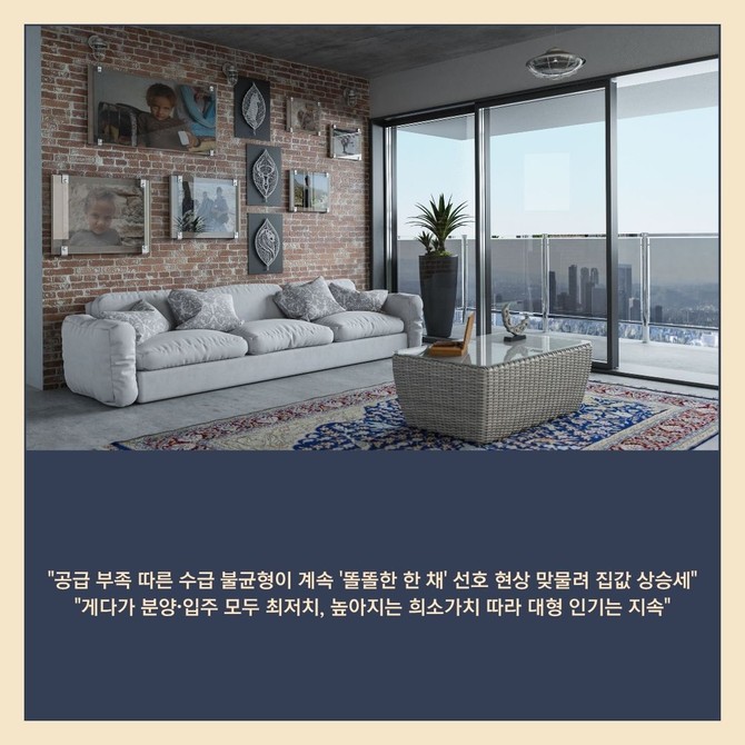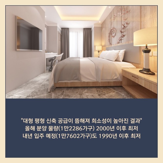 [프라임경제] 올해 전국에서 분양되는 전용 85㎡ 초과 대형 단지가 1만2000여가구로 집계 이래 최저치를 기록했다. 공급 감소 속 최근 5년간 대형 평형 가격 상승률이 주택형별 1위를 차지하며 희소가치도 높아지고 있다.