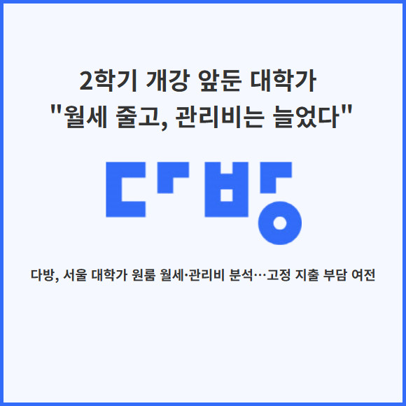 다방, 서울 대학가 원룸 월세·관리비 분석…고정 지출 부담 여전