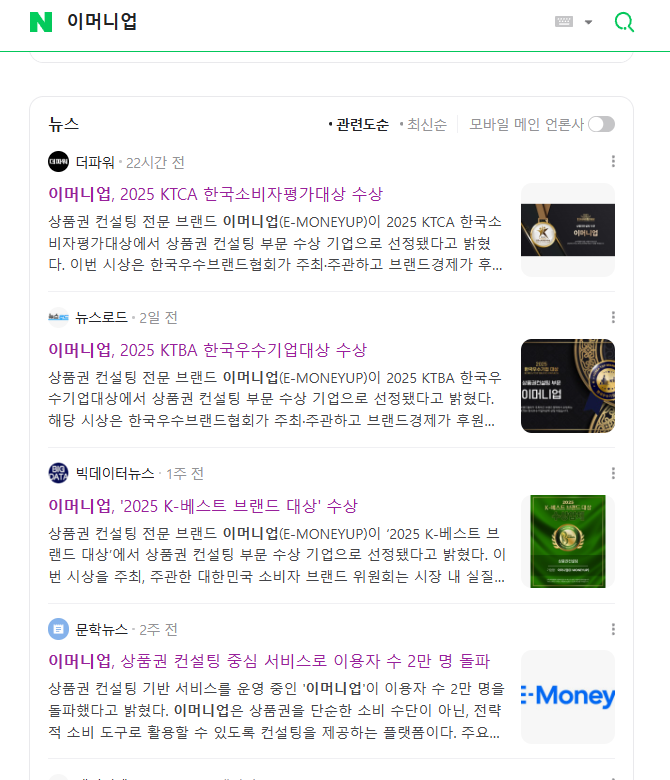 그런데 '이머니업, 2025년 K-베스트브랜드 대상 수상', '이머니업, 2025 KTCA 한국소비자평가대상 수상' 등의 기사가 눈에 들어왔다. 올해 7월 일부 언론사를 통해 올라온 기사들이다. 여기에 홈페이지에는 2024년부터 게시된 공지사항과 고퀄리티의 홍보영상이 있었다. A씨는 "기사와 영상을 보고 믿을 수 있는 회사라는 마음이 생겼다"고 말했다.