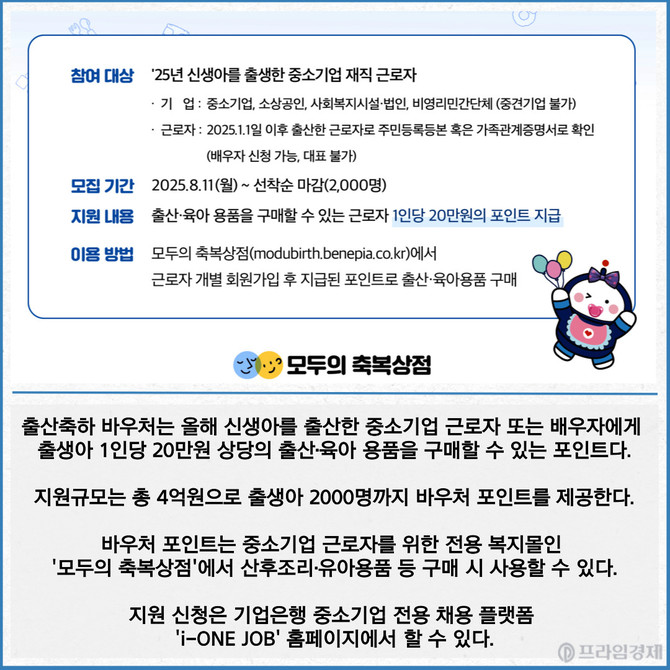 [카드] 기업은행, 중소기업 근로자 '출산축하 바우처' 제공