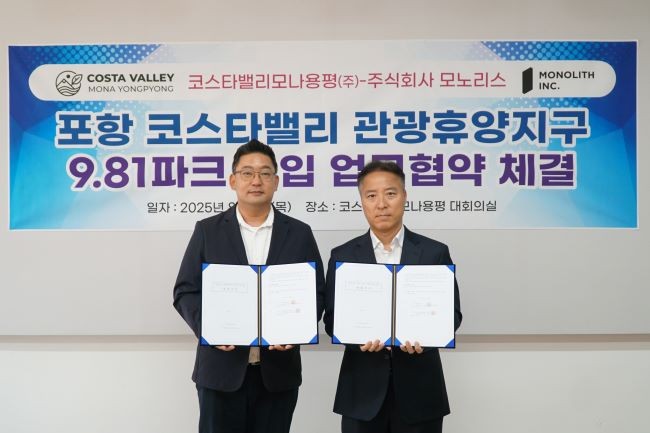 [프라임경제] 포항코스타밸리관광휴양지구(이하 코스타밸리) 개발을 추진 중인 코스타밸리모나용평(대표이사 임학운)과 모노리스(대표이사 김종석, 김나영)는 '코스타밸리' 내 레이싱 테마파크인 '9.81파크'를 도입하기 위한 업무협약을 체결했다.