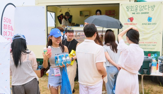 현장에서는 폐스티로폼과 플라스틱 조각을 컬링 스톤처럼 던지는 '쓰레기 컬링', 수거량을 화폐로 환산해 물품과 교환하는 '쓰레기 상점', 폐자재를 활용한 포토존 '베스트 친환경 드레서' 등 체험 프로그램도 운영됐다. 특히 '쓰레기 상점'은 10여 개 친환경 브랜드의 후원으로 물품 교환이 가능해 큰 호응을 얻었다.