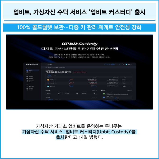 [프라임경제] 가상자산 거래소 업비트를 운영하는 두나무는 가상자산 수탁 서비스 '업비트 커스터디(Upbit Custody)'를 출시한다고 14일 밝혔다.