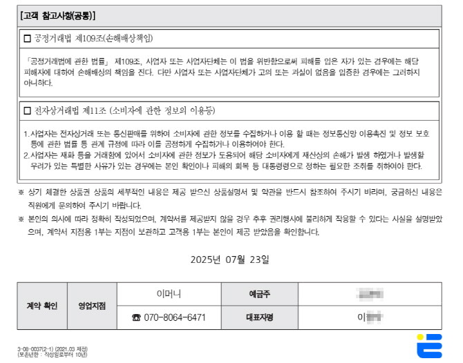 신뢰감을 주기 위해 발행한 예치금보호보증서도 문제라는 지적이다. 이 보증서에는 '독점규제 및 공정거래에 관한 법 제109조'와 '전자상거래법 제11조' 문구가 삽입돼 있다. 미등록 업체가 이러한 법 문구를 넣은 것은 투자자를 속이기 위한 목적이라는 것이다. 실제 본지가 입수한 고소장에는 "예치금보호보증서를 발행하여 투자자들을 안심시키는 기망 행위도 있었다"고 명시돼 있다. 단순히 허위 문서 작성을 넘어, 법률을 악용한 기망행위에 해당한다.