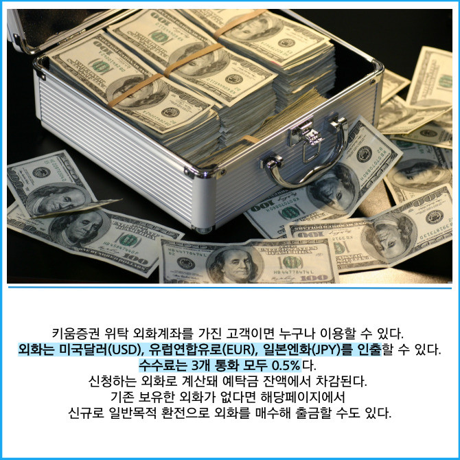 [프라임경제] 키움증권(039490)은 증권사 최초로 외화현찰지급서비스를 정식 출시했다고 14일 밝혔다. 서비스명은 '달러찾기'로 외화 예수금을 현금으로 인출할 수 있는 서비스다.