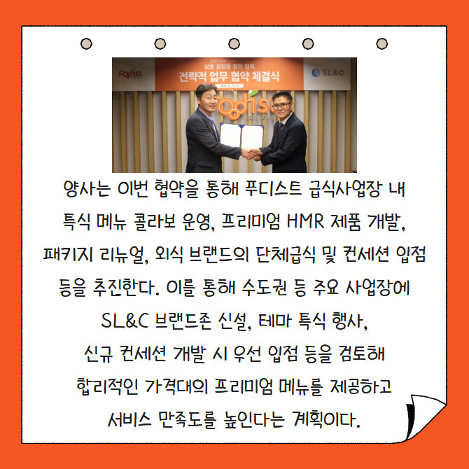 [카드] 단체급식부터 컨세션까지…푸디스트, SL&C와 전략적 MOU
