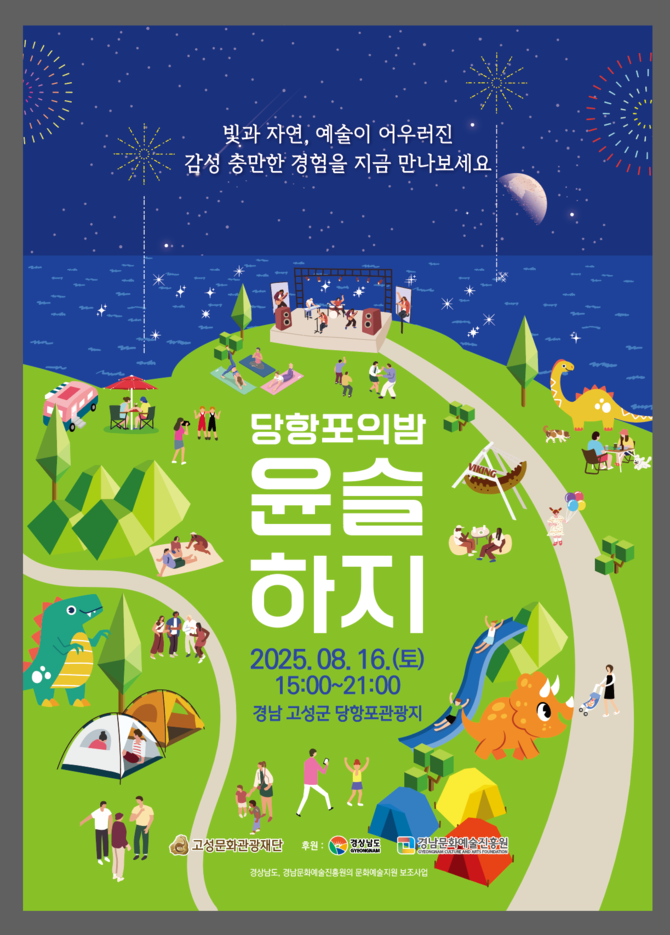 고성군 고성문화관광재단은 오는 8월16일, 오후 3시부터 밤 9시까지 당항포관광지에서 감성과 예술, 자연이 어우러지는 감성예술축제 '당항포의 밤 윤슬하지'를 개최한다.