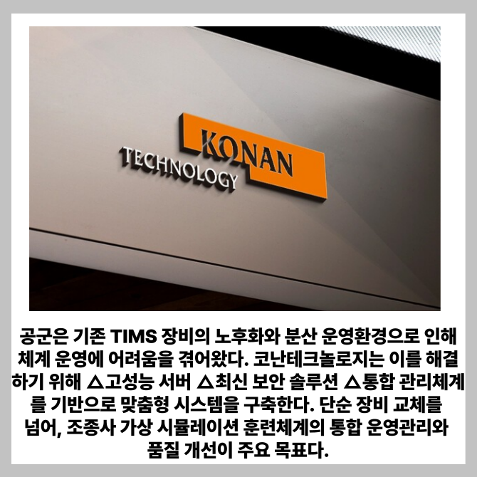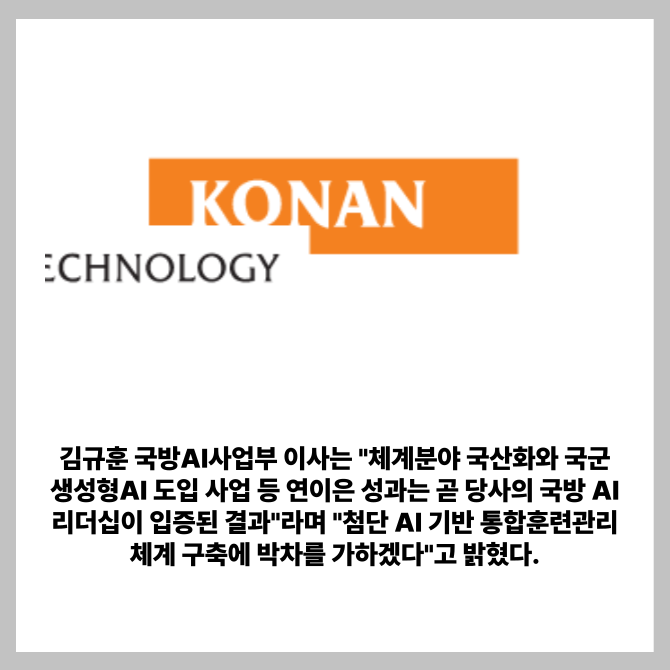 [프라임경제] 인공지능(AI) 소프트웨어 전문기업 코난테크놀로지(대표 김영섬, 402030)가 공군의 디지털 전환과 통합 훈련 품질 혁신을 주도한다.