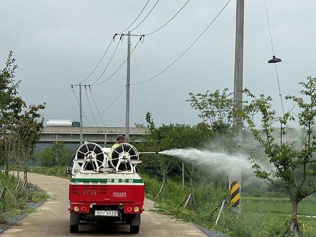 방제는 인체와 환경에 위해성이 낮은 친환경 성분 약제를 우선 사용하며 주민 불편을 최소화하기 위해 통행이 적은 새벽 시간대에 집중 살포한다.