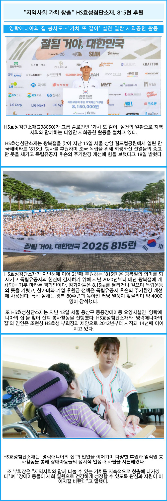 [카드] "지역사회 가치 창출" HS효성첨단소재, 815런 후원