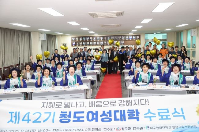 [프라임경제] 청도군(군수 김하수)은 지난 14일 풍각면사무소에서 수강생 41명과 내빈 등 60여명이 참석한 가운데 제42기 청도여성대학 수료식을 개최했다.
