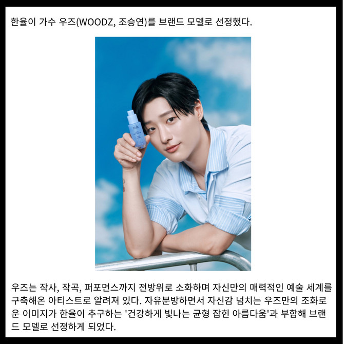 [프라임경제] 한율이 가수 우즈(WOODZ, 조승연)를 브랜드 모델로 선정했다.