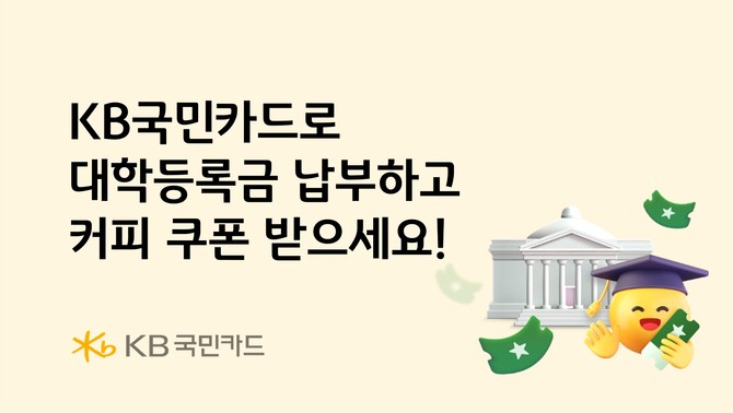 KB국민카드는 대학등록금을 납부한 고객에게 스타벅스 커피 쿠폰을 제공하는 행사를 진행한다고 18일 밝혔다.