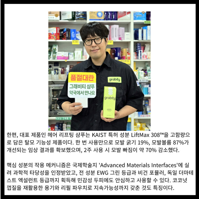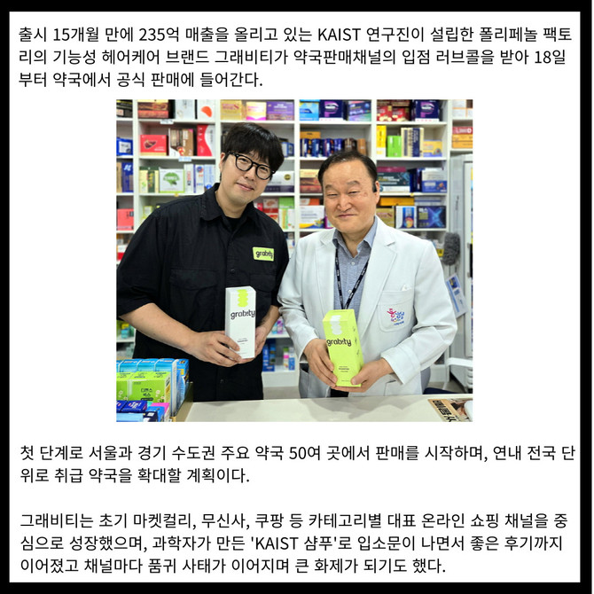 [프라임경제] 출시 15개월 만에 235억 매출을 올리고 있는 KAIST 연구진이 설립한 폴리페놀 팩토리의 기능성 헤어케어 브랜드 그래비티가 약국판매채널의 입점 러브콜을 받아 18일부터 약국에서 공식 판매에 들어간다.
