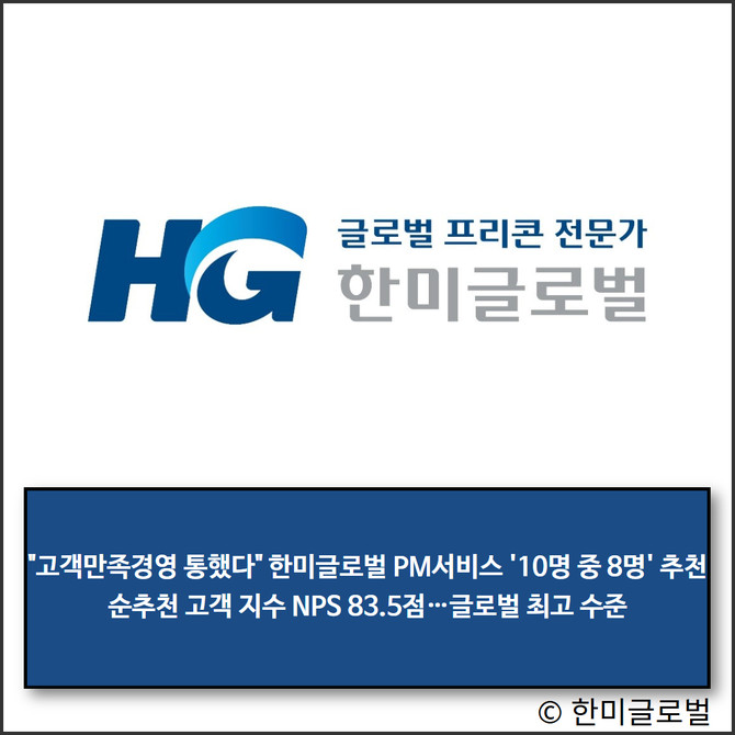 한미글로벌은 2007년 20점대 점수를 시작으로, 2009년부터 50점대 점수를 기록하고 꾸준히 점수가 상향된 결과 올해 처음으로 글로벌 최고 수준인 83.5점을 기록했다. 한미글로벌 측은 "그간 NPS를 객관적인 고객 의견 측정의 주요 경영 지표로 삼고, 고객과 지속 면담을 통해사업 단계별 불편 요소를 제거하고 실질적인 서비스 개선 노력을 이어왔다" 고 말했다.