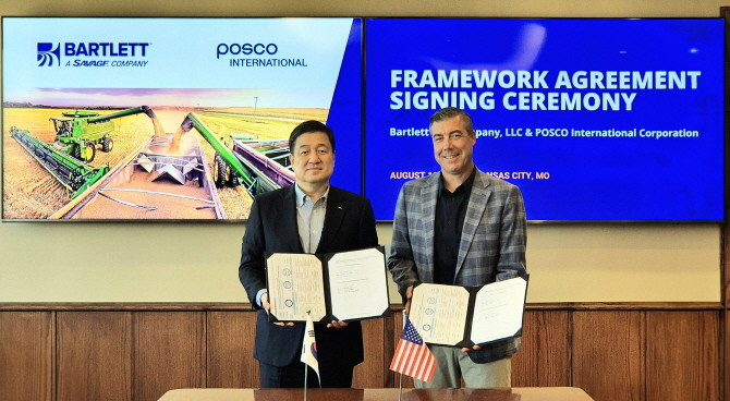 [프라임경제] 포스코인터내셔널(047050)이 18일(현지시간) 미국 캔자스시티에서 미국 곡물기업 바틀렛앤컴퍼니(Bartlett and Company·이하 바틀렛)와 업무협약을 체결했다고 밝혔다.
