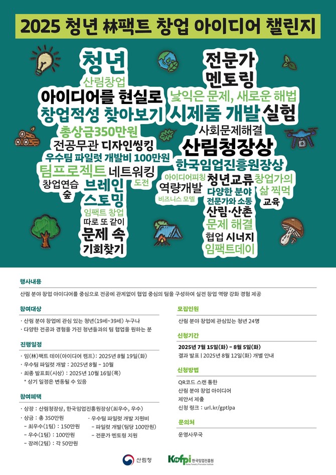 ■ 산림청 '2025 청년 林(임)팩트 창업 아이디어 챌린지' 개최