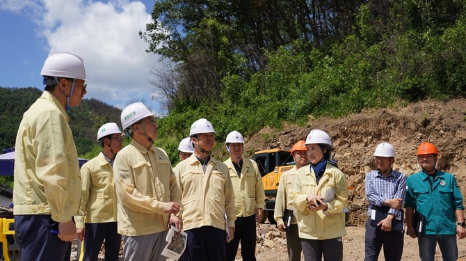 점검 대상 사업장은 지난 3월 발생한 대형 산불 피해지로, 집중호우 시 산사태 등의 2차 피해를 예방하기 위해 민가 주변 옹벽 쌓기, 계곡 골막이 설치, 급경사지 떼붙이기 등의 복구 공사가 진행 중이다.