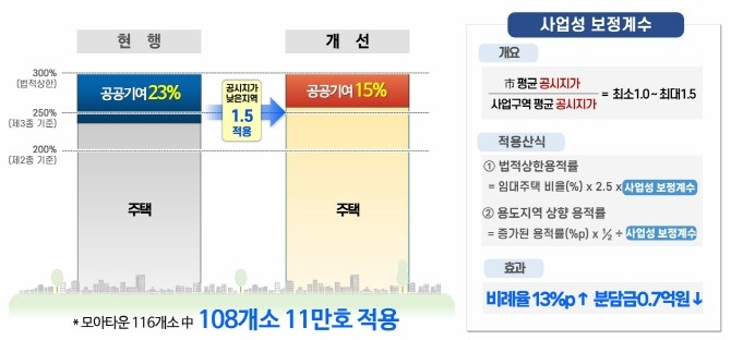 이번 방안 핵심은 '사업성 제고'다. 그동안 재개발·재건축에서만 활용한 사업성 보정계수를 모아주택에도 적용해 일반분양 비중을 높이고, 공공기여는 완화한다는 방침이다.