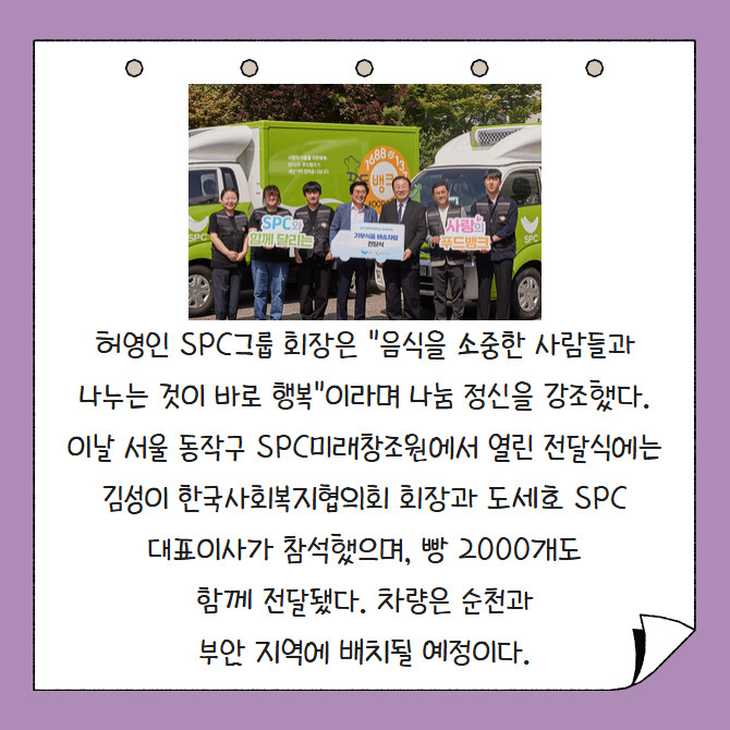 [카드] 빵∙아이스크림에 트럭까지…SPC, 푸드뱅크에 3200억원 기부