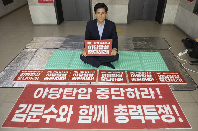 [프라임경제] 특검의 압수수색에 강력한 반발을 표하는 국민의힘이 당사로 집결했다. 김문수 당대표 후보가 농성 시위를 펼치는가 하면 지도부는 집무실을 당사로 옮기기도 했다.