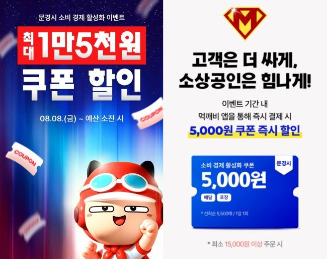 문경시는 지난 8일부터 문경시상권활성화재단과 함께 공공배달앱 '먹깨비'를 통해 소비경제활성화를 위한 '5000원 할인 쿠폰 이벤트'를 진행 중이다.