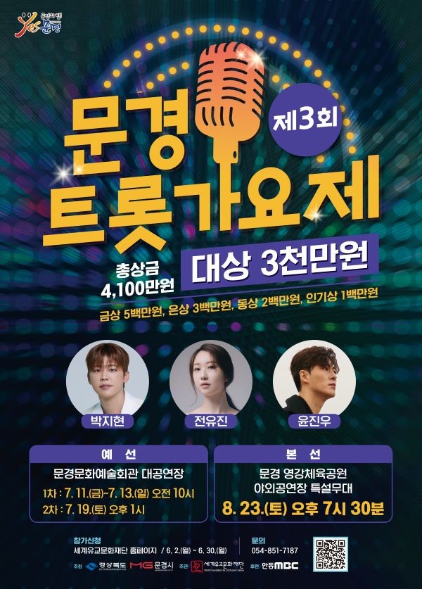 [프라임경제] 문경시(시장 신현국)는 오는 23일 영강체육공원 야외공연장 특설무대에서 '제3회 문경트롯가요제' 본선을 성대하게 개최한다.