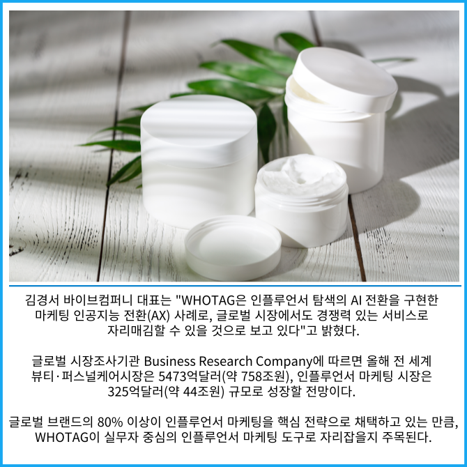 올해 초 국내 마케팅 대행사 및 K-뷰티 브랜드와의 협업을 통해 WHOTAG의 기술력과 활용 가능성을 검증한 후, 이번에 109개국을 대상으로 글로벌 버전을 확장해 선보인 것이다.