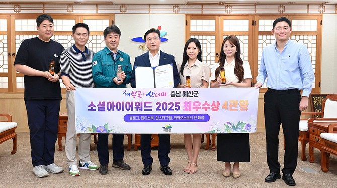 [프라임경제] 충남 예산군은 과학기술정보통신부 산하 사단법인 한국인터넷전문가협회가 주최하고 한국인터넷진흥원(KISA) 등이 후원한 '소셜아이어워드 2025'에서 군 공식 SNS 4개 채널(블로그·페이스북·인스타그램·카카오스토리)이 모두 최우수상을 수상했다고 20일 밝혔다.