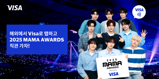 글로벌 결제 기술 기업 비자(Visa)는 세계적인 K-POP 시상식 '2025 MAMA AWARDS(마마 어워즈)' 해외 결제 고객을 위한 VIP 패키지 응모 프로모션을 실시한다고 20일 밝혔다. 비자는 MAMA AWARDS의 타이틀 스폰서로, 글로벌 문화 콘텐츠인 K-POP을 통해 비자 컨택리스 결제에 대한 인지도를 높이기 위해 이번 프로모션을 기획했다.