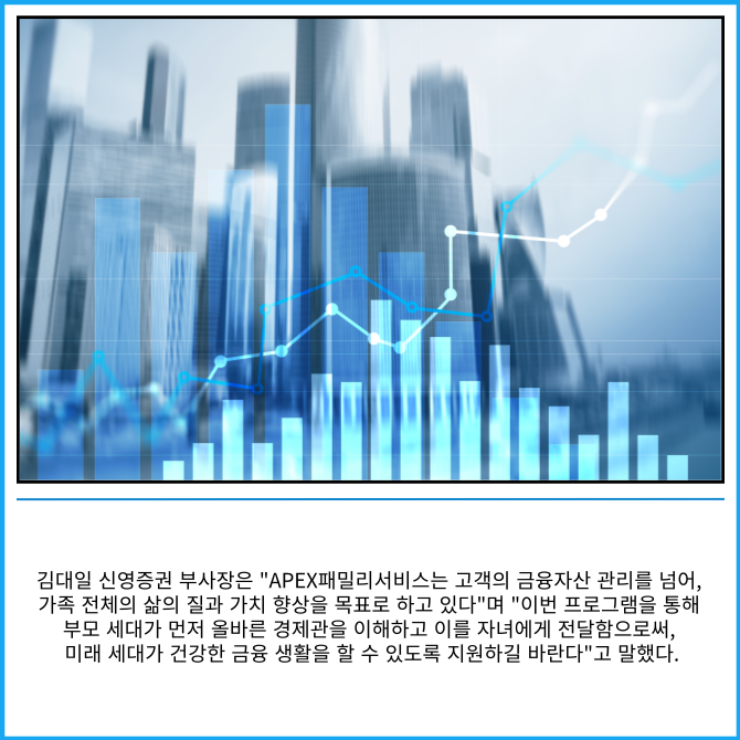 이번 행사는 초등 고학년부터 중학생 자녀 또는 손자녀를 둔 우수 고객 및 신영증권 자산관리서비스인 'APEX패밀리서비스' 가입 고객을 대상으로 진행된다.
