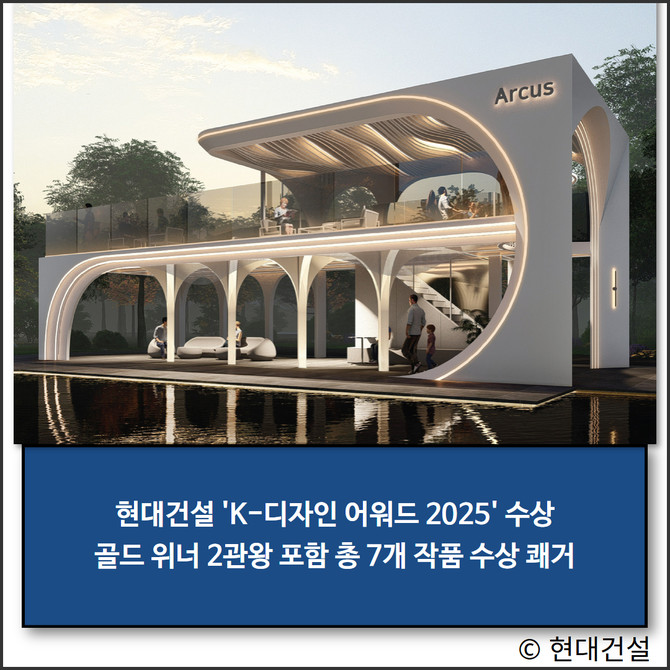 현대건설은 'K-디자인 어워드 2025(K-Design Award 2025)'에서 힐스테이트 환호공원의 '아르쿠스(Arcus)'와 힐스테이트 신용 더리버 '트라이앵글 하우스(Triangle House)'로 공간 디자인 부문 골드 위너(Gold Winner)를 수상했다고 20일 밝혔다. 올해 전체 참가사 중 공간 부문 2관왕을 동시에 차지한 기업은 현대건설이 유일하다.