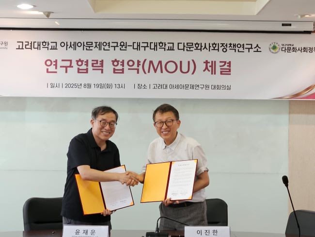 대구대학교 다문화사회정책연구소(소장 윤재운)와 고려대학교 아세아문제연구원(원장 이진한)은 지난 19일 고려대 아세아문제연구원 대회의실에서 업무협약을 체결했다.