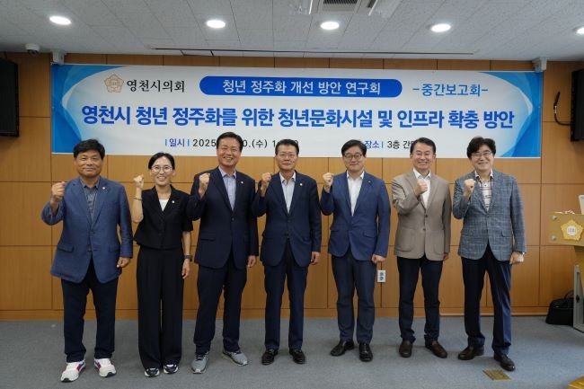 영천시의회 의원연구단체인 '영천시 청년정주화 개선방안 연구회'(대표 김종욱 의원)는 이와 관련된 연구용역의 중간보고회를 지난 20일 의회 간담회장에서 개최했다.