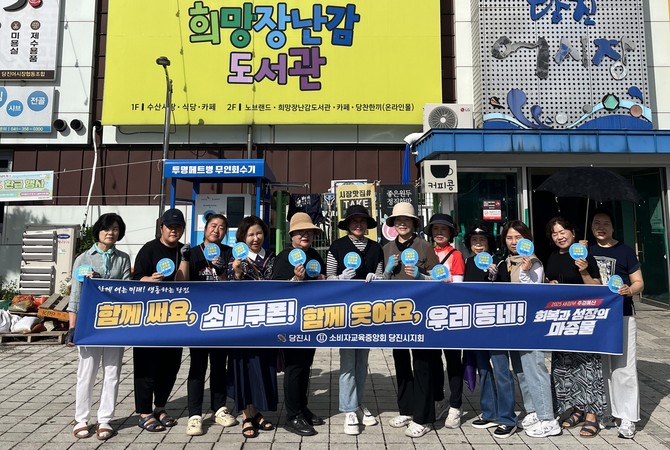 이번 캠페인에는 당진시 민생회복 소비쿠폰 T/F팀과 소비자교육중앙회 당진시지회 회원 등 20여 명이 참여했다. 참가자들은 소비쿠폰 사용을 독려하고, 소비쿠폰 사용처 스티커가 미부착된 업체를 대상으로 스티커를 배부하며 전통시장 이용 활성화에 나섰다.