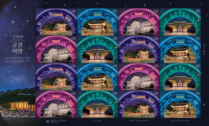 이번 기념우표에는 경복궁·창덕궁·덕수궁·창경궁 등 서울 4대 궁궐의 야행 풍경이 담겼다. 청사초롱 불빛 아래 고즈넉한 궁궐을 거니는 장면을 통해 역사와 전통의 이야기를 전한다.