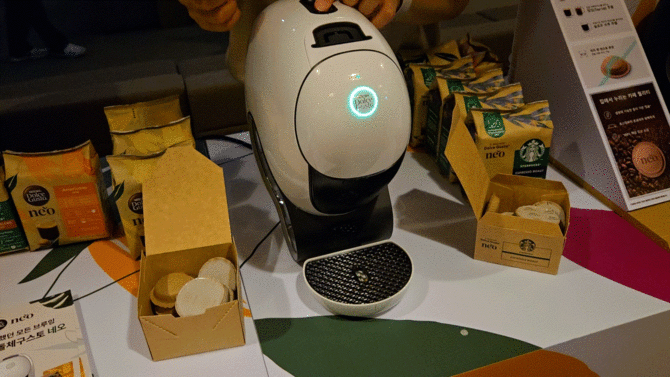 이번 네스카페 돌체구스토 네오 신제품에서 가장 눈에 띄는 점은 종이 기반 '네오 캡슐'이다. 네오 캡슐은 네슬레 최초로 도입됐으며 퇴비화 가능한 바이오폴리머(biopolymer)로 제작돼 커피의 품질 및 신선도를 산화로부터 보호한다. 이 밖에도 커피 머신은 50% 재활용 플라스틱으로 제작됐으며, 물을 가열하는 써모블록(온수가열장치)은 85% 재활용 알루미늄으로 만들어졌다.