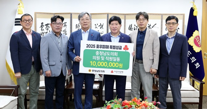 한편, 충남도의회는 이번 성금 전달 외에도 피해 지역 현장 점검, 주민 의견 청취, 복구 지원 방안 마련 등 도민의 조속한 일상 회복을 위한 다양한 활동을 이어가고 있다.