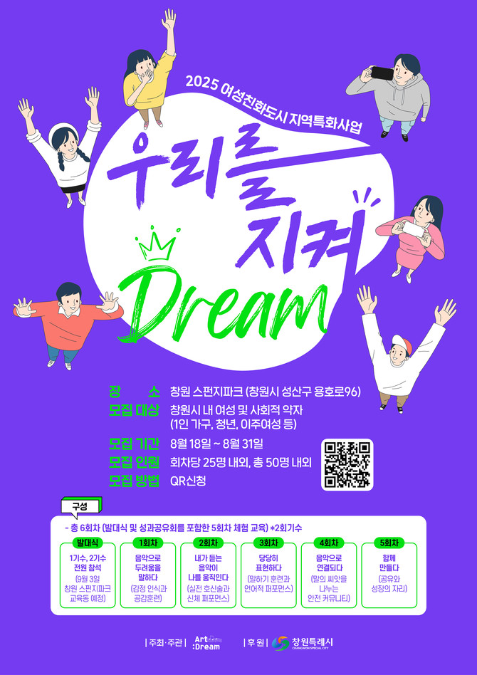 창원시는 '청년예술단체 아트드림'이 창원시와 함께 2025 여성친화도시 지역특화사업 '우리를 지켜 Dream' 프로그램을 운영한다고 21일 밝혔다.