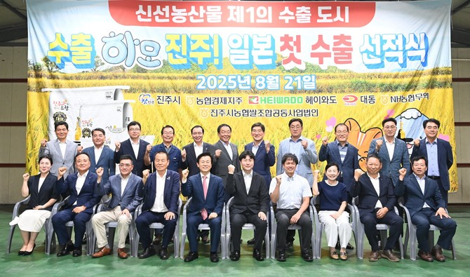 [프라임경제] 진주시는 21일 진주시쌀조합공동사업법인에서 조규일 진주시장과 이천일 농협경제지주 상무, 일본 바이어인 ㈜헤이와도·이토추식품(주)·대동(주) 관계자 등이 참석한 가운데 '진주드림 쌀'을 일본에 첫 수출하는 선적식을 가졌다.