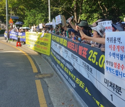 [프라임경제] 아스팔트를 녹일 듯 쩔쩔끓는 태양도 이들 분노를 막지 못했다. 감만1구역 조합원들이 '수사는 지지부진, 행정은 수수방관'을 주장하며 부산 남부경찰서 앞을 가득 메웠다.