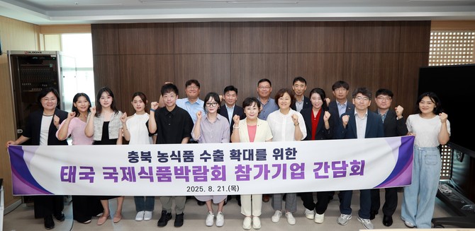 충북도의회 산업경제위원회 김꽃임 위원장은 21일 도의회 신청사 회의실에서 '태국 국제식품박람회 참가기업 간담회'를 열고, 농식품 기업의 수출 확대 방안을 모색했다. 이번 간담회에는 박람회에 참가한 8개 농식품 기업과 충북도 농정국 관계자가 참석했다.