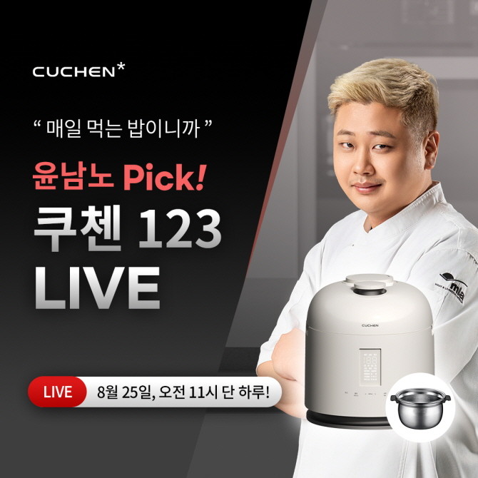 쿠첸이 오는 25일 오전 11시부터 60분간 네이버 쇼핑라이브에서 윤남노 셰프와 함께하는 '쿠첸X윤남노 셰프 123 라이브' 방송을 진행한다고 밝혔다.
